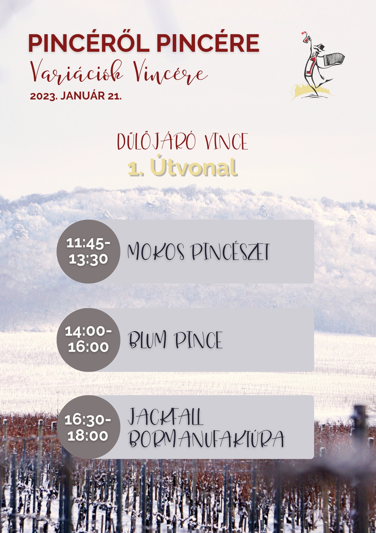 1. útvonal lehetőség: Mokos PicészetBlum PinceJackfall Bormanufaktúra
