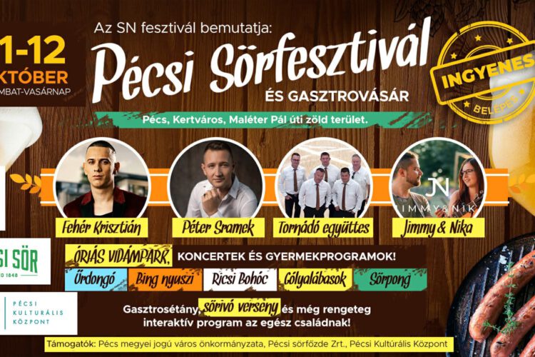 Pécsi Sörfesztivál a Pécsi Sör támogatásával 2025.10.11-12-én. A színpadon többek között Fehér Krisztián, Péter Sramek vagy Jimmy és Nika!