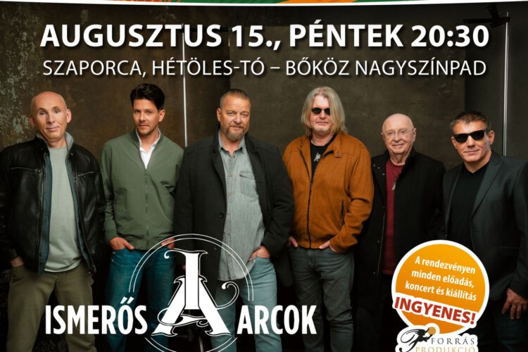 Ismerős Arcok koncert 2025.08.15-én pénteken, 20:30-tól a Bőköz Fesztiválon, az Ormánság fesztiválján! Helyszín Szaporca és a Hétöles-tó, a Bőköz Nagyszínpad.