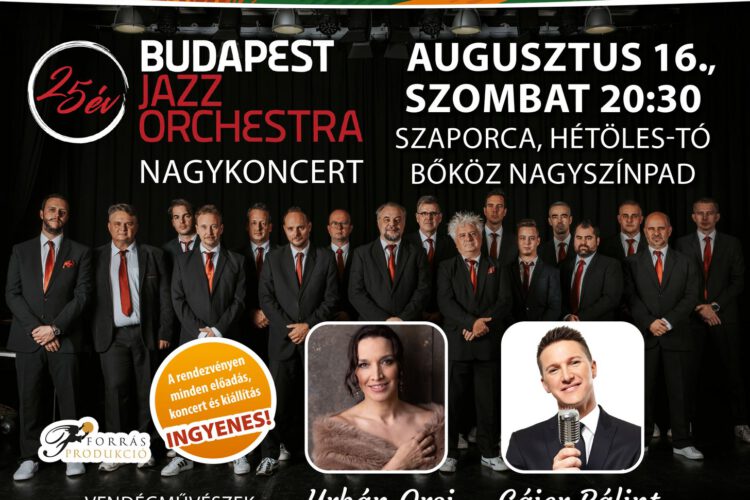 Budapest Jazz Orchestra koncert 2025.08.16-án szombaton, 20:30-tól a Bőköz Fesztiválon, az Ormánság fesztiválján! Helyszín Szaporca, a Bőköz Nagyszínpad.