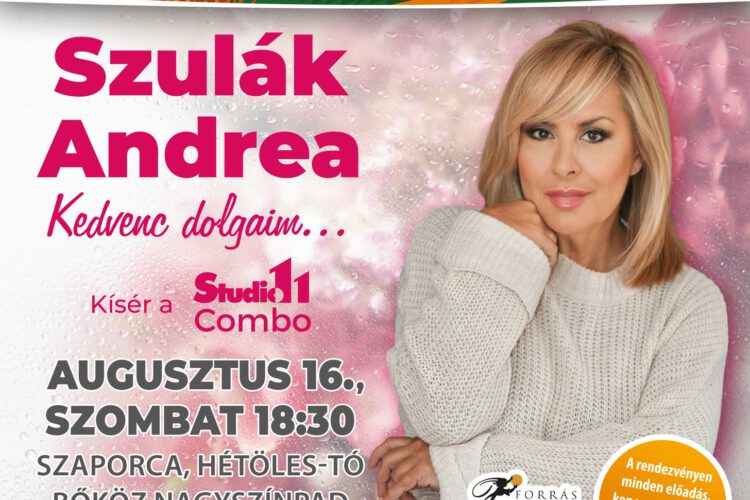 Szulák Andrea koncert 2025.08.16-án szombaton, 18:30-tól a Bőköz Fesztiválon, az Ormánság fesztiválján! Helyszín a szaporcai Hétöles-tó, a Bőköz Nagyszínpad.