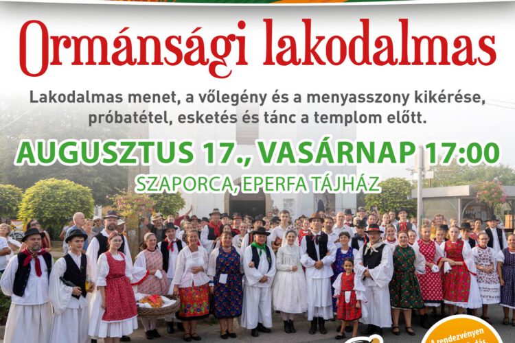 Ormánsági lakodalmas esemény 2025.08.17-én vasárnap, 17:00-tól a Bőköz Fesztiválon, Szaporcán, az Eperfa Tájházban! Lakodalmas menet, kikérés, esketés.