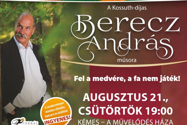 Berecz András előadása a Kémesi Művelődési Házban, 2025.08.21-én csütörtökön, 19:00-tól a Bőköz Fesztivál keretében! Fel a medvére, a fa nem játék!